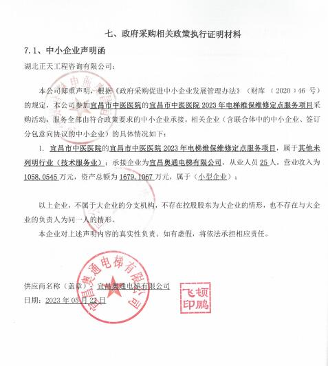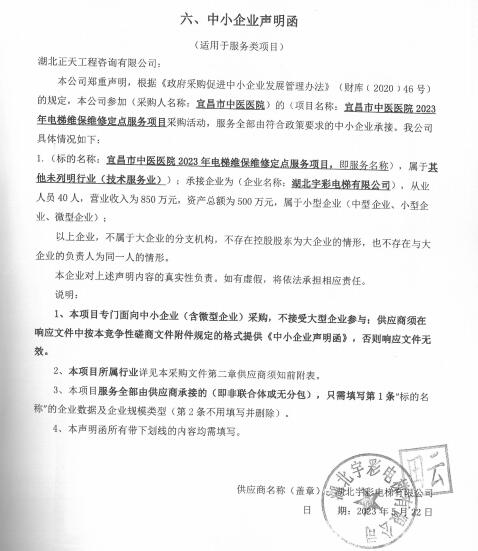 二、项目名称:宜昌市中医医院2023年电梯维保维修定点服务项目
