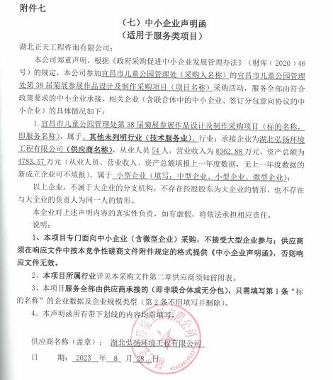 二、项目名称:宜昌市儿童公园管理处第38届菊展参展作品设计及制作采购项目